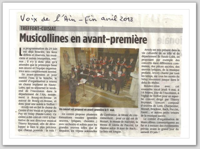 Article Voix de l'Ain Treffort Avril 2013